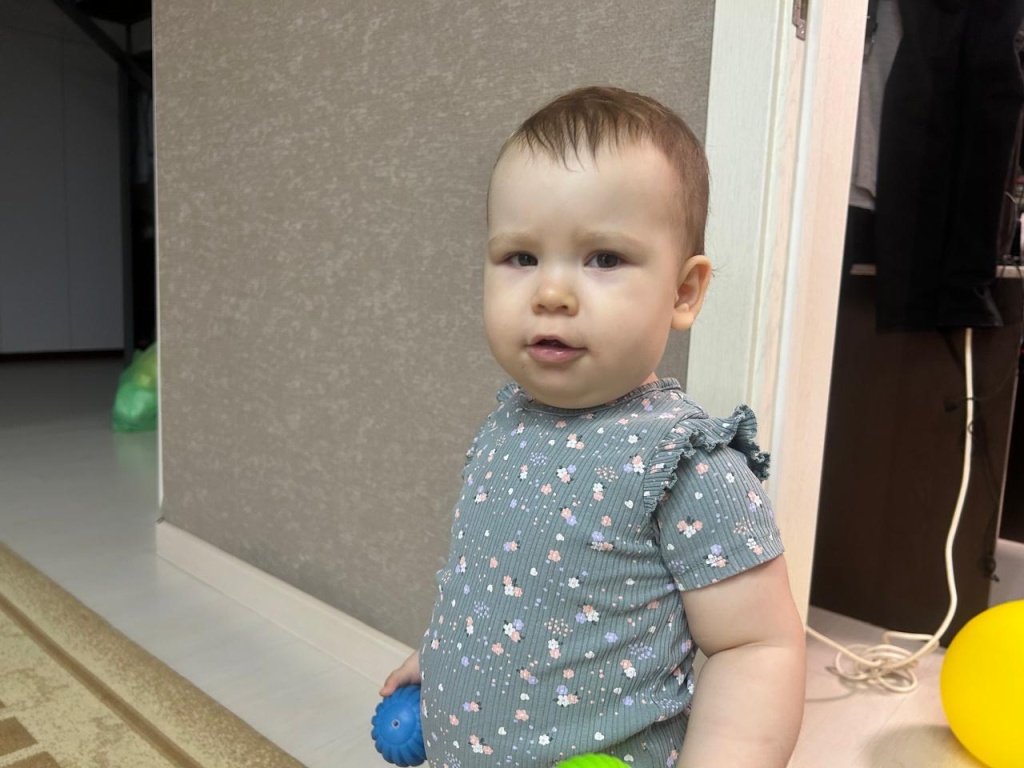 Она родилась с диагнозом спина бифида и перенесла операцию на шестые сутки после рождения. С тех пор каждый день для неё — шаг вперёд: она растёт, развивается, делает первые уверенные шаги, смеётся и радует родителей своей жизнерадостностью.